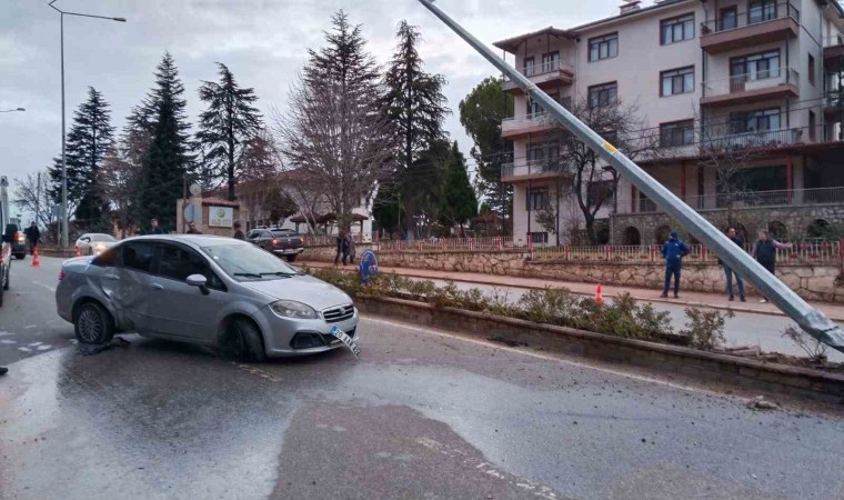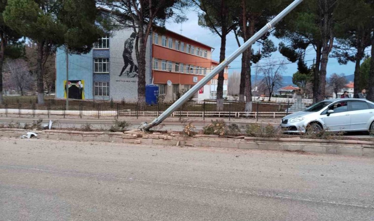 Denizli’nin Çal ilçesinde kontrolden çıkarak karşı şeride geçen otomobil, refüjdeki aydınlatma direğine çarparak durabildi.
