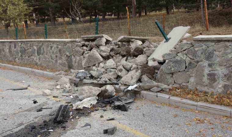 Çarpmanın etkisiyle duvar yıkılırken hava yastıkları açılan aracın ön tarafında hasar oluştu.