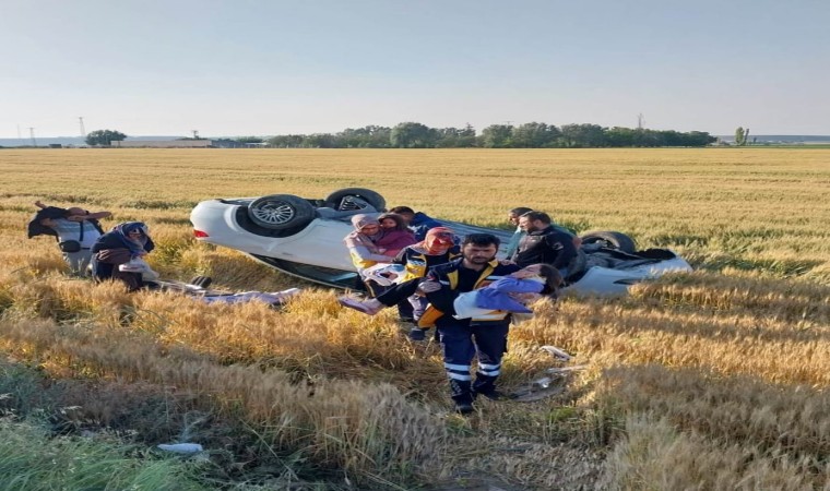 Konya’nın Karapınar ilçesinde kontrolden çıkan otomobilin buğday tarlasına takla atması sonucu meydana gelen trafik kazasında 2’si çocuk 4 kişi yaralandı.