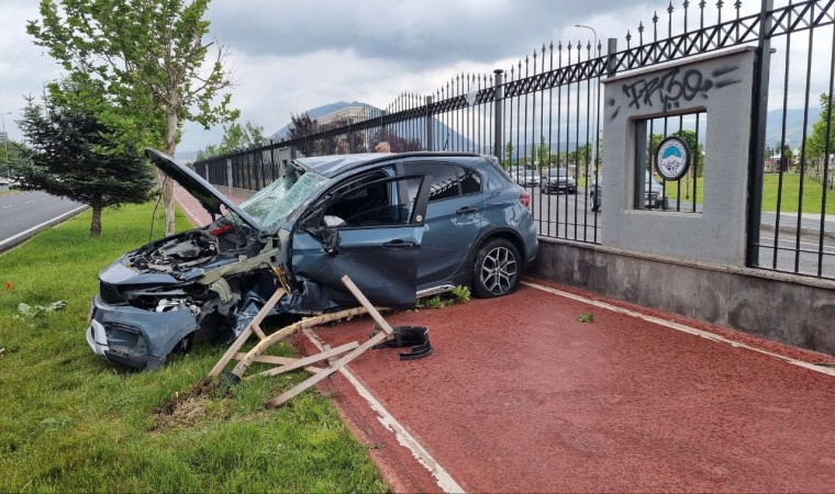 Kayseri’nin Melikgazi ilçesinde sürücüsünün direksiyon hakimiyetini kaybettiği otomobil aydınlatma direğine çarparak yan yola uçtu.