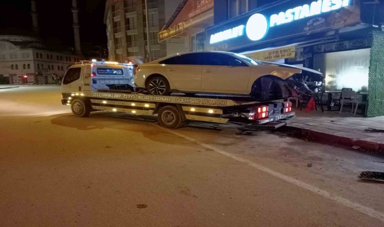 Burdur’un Gölhisar ilçesi Cumhuriyet Meydanı’nda seyir halindeyken sürücüsünün direksiyon hakimiyetini kaybetmesi sonucu kontrolden çıkan otomobil, bir iş yerine daldı. O anlar güvenlik kamerasına yansıdı.
