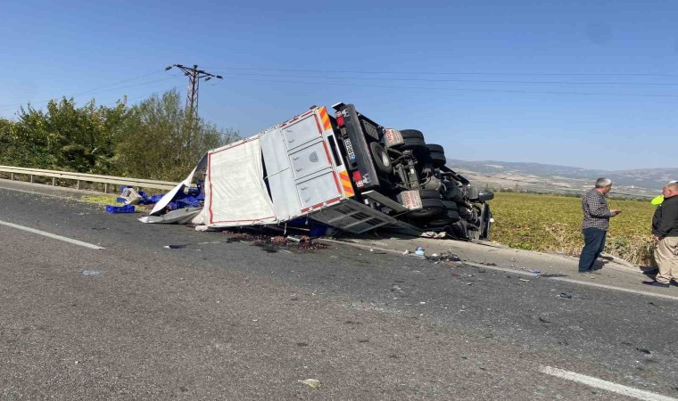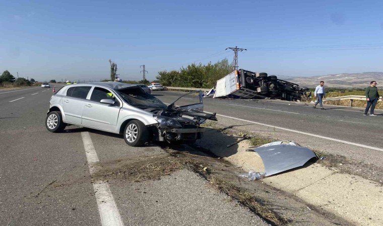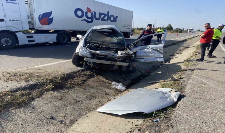 Manisa’nın Alaşehir ilçesinde sürücüsünün direksiyon hakimiyetini kaybettiği otomobil karşı şeride geçerek seyir halindeki üzüm yüklü kamyonla çarpıştı. 3 kişinin yaralandığı kazada çarpışmanın etkisiyle devrilerek yan yatan kamyondaki üzümler yola saçılırken, her iki araçta da büyük maddi hasar meydana geldi.