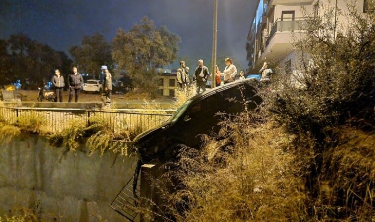 Muğla’nın Milas ilçesinde sürücüsünün kontrolünü kaybettiği otomobil korkuluklara çarparak durabildi.
