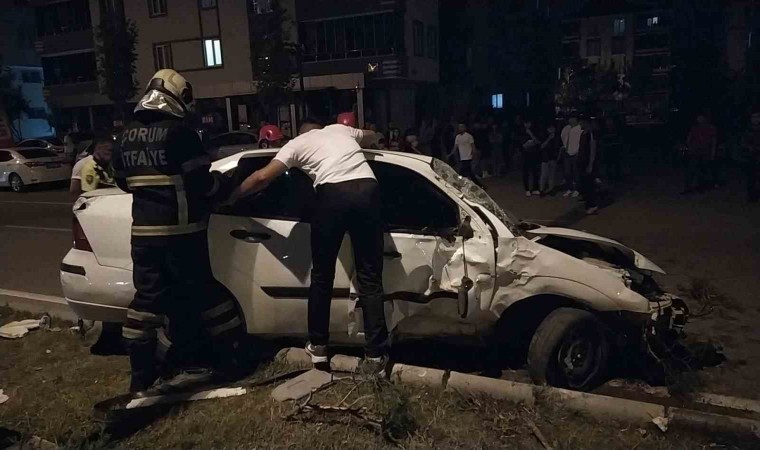 Çorum’da kontrolden çıkan otomobilin orta refüje çarpması sonucu meydana gelen trafik kazasında 2 kişi yaralandı.