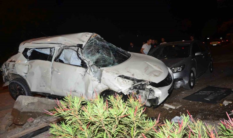 Antalya’da kontrolden çıkan bir otomobil, yol kenarındaki park halindeki otomobil, çöp konteynırı ve elektrik panosuna çarptıktan sonra takla attı, kazada 1 kişi yaralandı.
