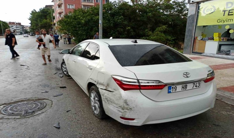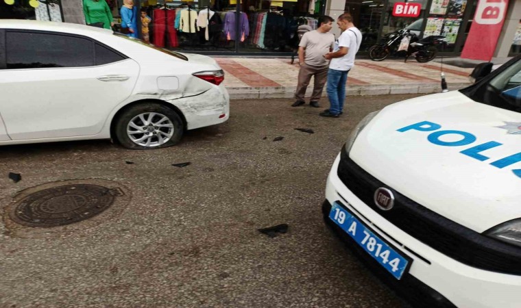 Çorum’un Osmancık ilçesinde kontrolden çıkan otomobil, park halindeki 2 otomobile çarptı.