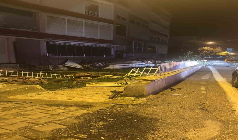 Bursa’da bir otomobil sitenin beton korkuluklarını aşıp takla attı. Yaralanan sürücü hastanede tedavi altına alındı.