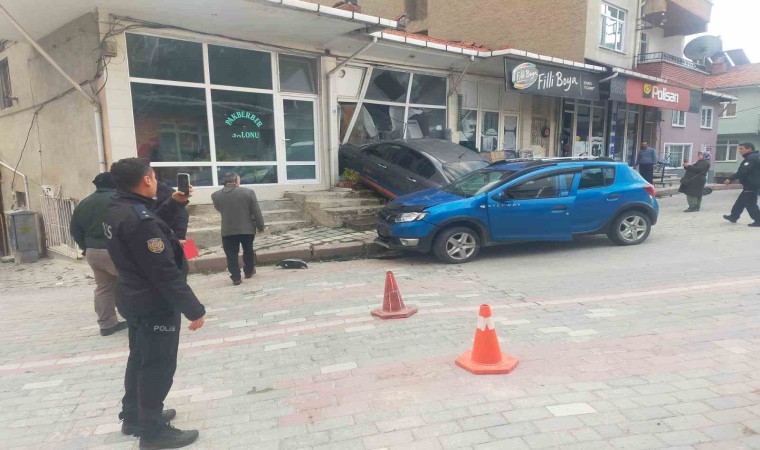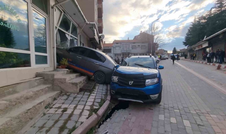 Kütahya’nın Domaniç ilçesinde kontrolden çıkan otomobil, yayaya ve park halindeki 2 araca çarptı. Park halindeki araçlardan biri çarpmanın şiddetiyle iş yerinin deposunu daldı. Kazada yaralanan yaya hastaneye kaldırıldı.