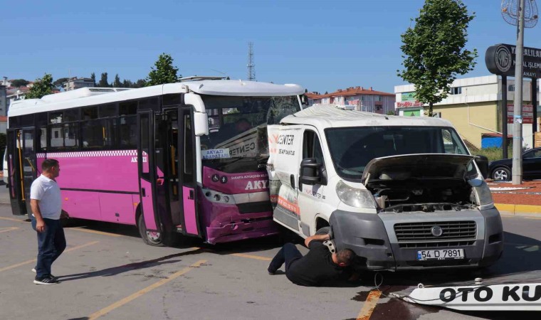 Sakarya’nın Erenler ilçesinde freninin boşaldığı öne sürülen özel halk otobüsü, park halindeki otomobile çarptıktan sonra seyir halindeki minibüse ok gibi saplandı. Kazada otobüs şoförü yaralandı.