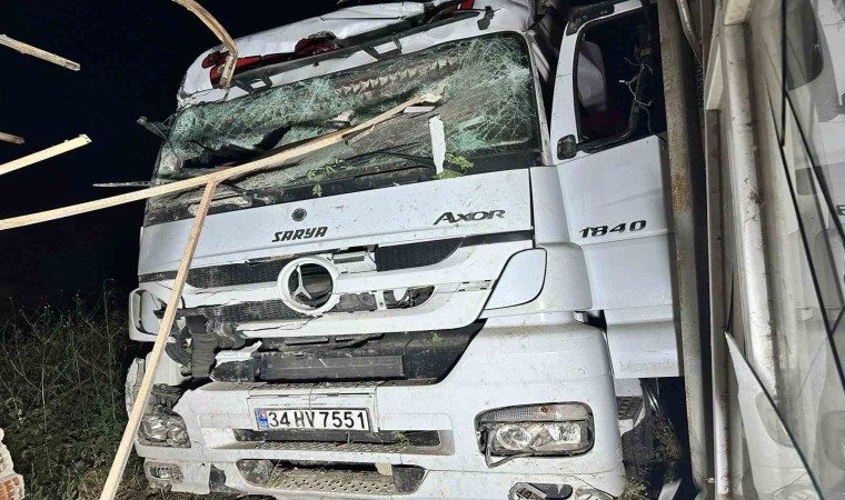 Kontrolden çıkan tırı oyuncak yüklü olduğu öğrenilirken, kazada büyük çapta maddi hasar meydana geldiği belirtildi.