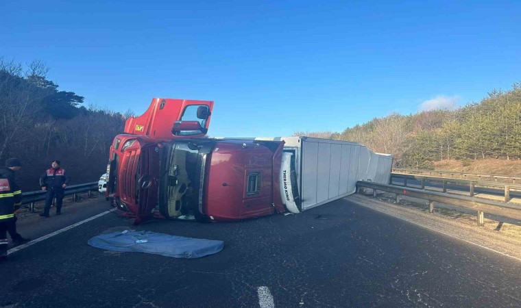 Bolu’nun Gerede ilçesinde D-100 karayolunda kontrolden çıkan tır devrildi. Kazada tır sürücüsü yaralandı.