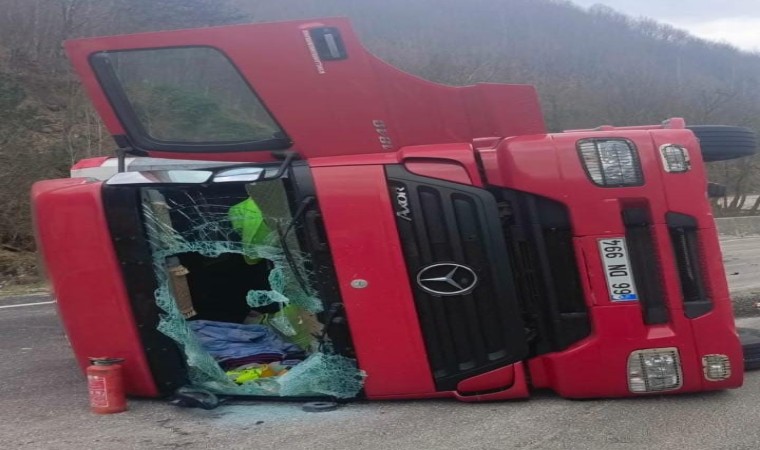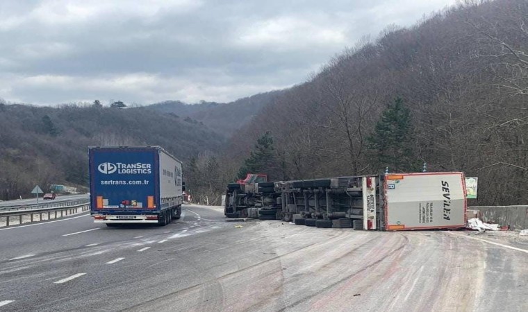 Kaza, saat 15.30 sıralarında Bursa-Ankara karayolu Mezit-7 mevkiinde meydana geldi. İnegöl’den Ankara istikametine seyir halinde olan sürücü Osman A. (65) idaresindeki 66 DN 994 plakalı karton yüklü tır, Mezit boğazında sürücüsünün kontrolünden çıkarak yolun sağ kısmına devrildi. Kaza sonucu sürücü yaralandı.