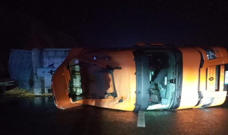 Kaza Bursa-Ankara kara yolu Mezit Tüneli mevkisinde meydana geldi. Bozüyük’ten İnegöl’e seyir halindeki Yiğitkan Ö. (25) yönetimindeki 34 CTZ 839 plakalı talaş yüklü tır, yağış nedeniyle kayganlaşan yolda direksiyon hakimiyetinin kaybolması sonucu devrildi. Kaza sonucu tır sürücüsü yaralanırken, Bursa-Ankara kara yolunun Bursa istikameti ise trafiğe kapandı.