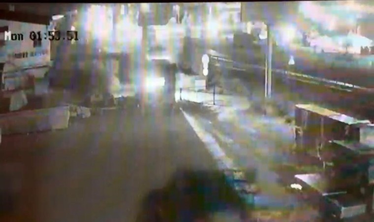 Tırın güvenlik kulübesine çarpma anı ise iş yerinin güvenlik kameralarınca saniye saniye kaydedildi.