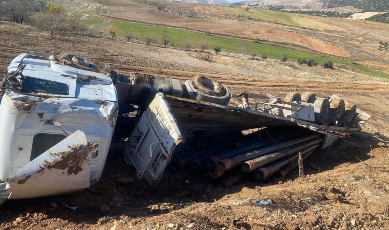Adıyaman’da, sürücüsünün direksiyon hakimiyetini kaybettiği tırın şarampole devrilmesi sonucu 1 kişi yaralandı.
