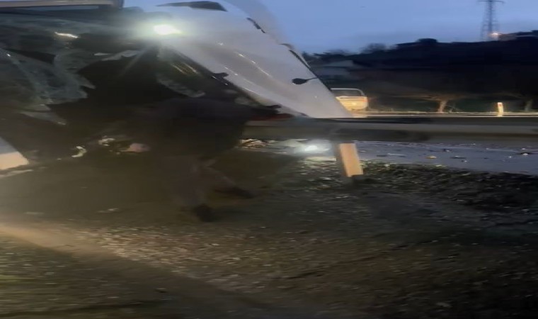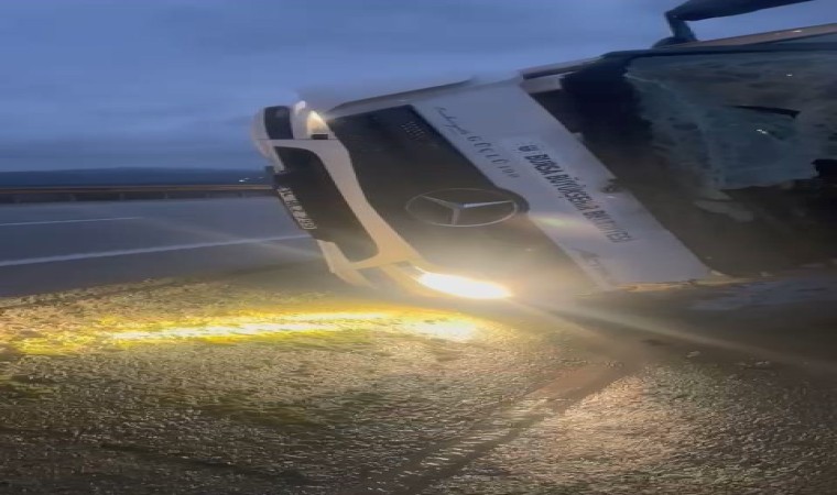 Bursa’da kontrolden çıkan tırın bariyerlere çarparak yan yattığı kazada 1 kişi yaralandı.