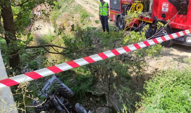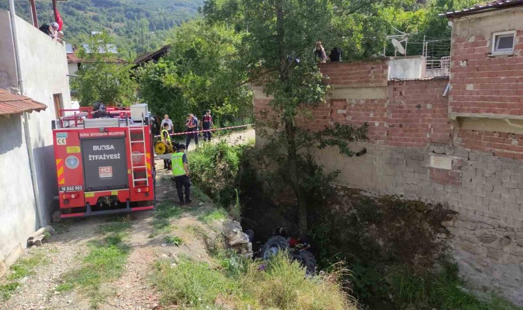 Bursa’nın Orhangazi ilçesinde geri manevra yaparken kontrolden çıkan bir traktör dere yatağına uçtu. Yaklaşık 3 metrelik derede ters dönen traktörün yaşlı sürücüsü hayatını kaybetti.