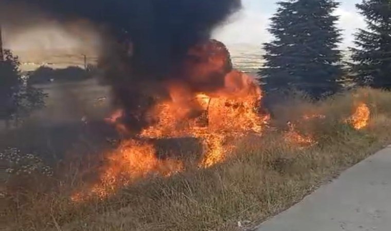 KONTROLDEN ÇIKARAK DEVRİLEN ARAÇ ALEV ALEV YANDI