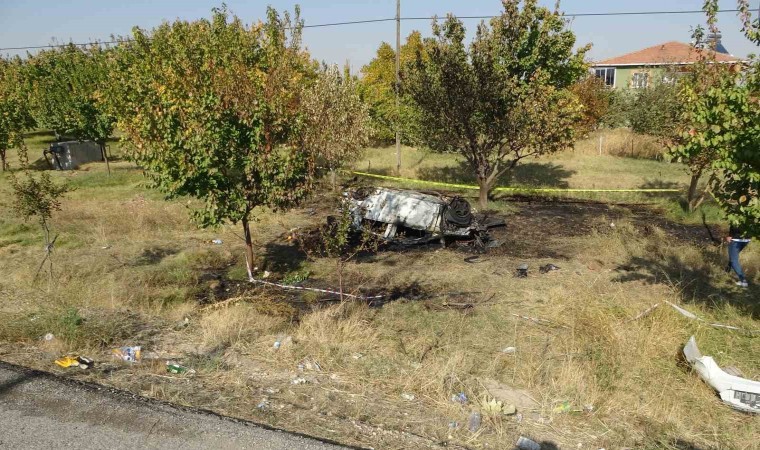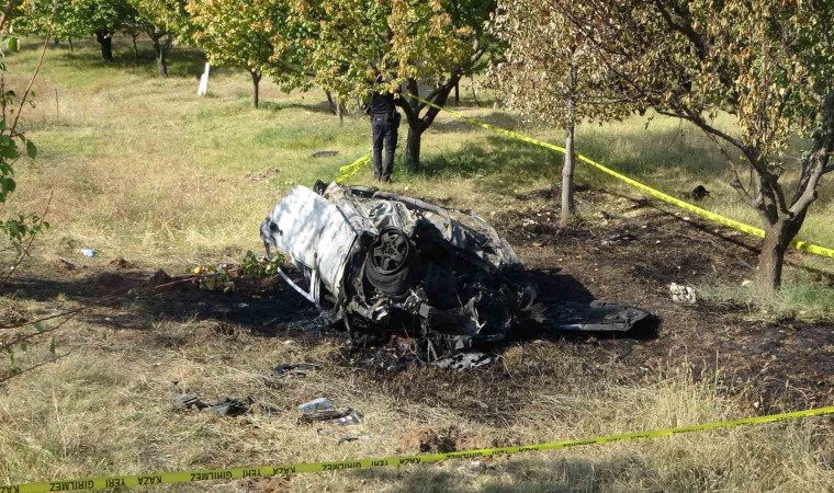 Malatya’da sürücünün kontrolünden çıkarak kayısı bahçesine uçan otomobil yanarak küle döndü. Feci kazada 2 kişi hayatını kaybetti.