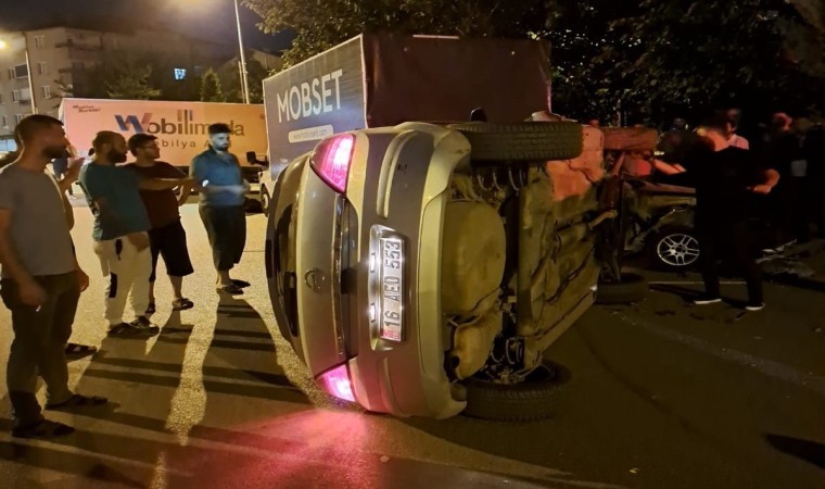 Kaza, saat 00.30 sıralarında İnegöl ilçesi Mahmudiye Mahallesi Ertuğrulgazi Caddesi üzerinde meydana geldi. Cadde üzerinde seyir halinde olan Halil Ö. (28) yönetimindeki 16 AED 553 plakalı otomobil, sürücüsünün kontrolünden çıkarak yol kenarında park halinde olan 16 MB 1456 plakalı otomobile ve 16 JT 518 plakalı kamyonete çarpıp devrildi. Yan yatan aracın sürücüsü ve yanındaki yolcu Esra K. (23) yaralandı. Sesi duyan vatandaşların ihbarı üzerine olay yerine sağlık ve polis ekibi sevk edildi. Yaralılar, olay yerine sevk edilen sağlık ekiplerince İnegöl Devlet Hastanesi’ne kaldırıldı.