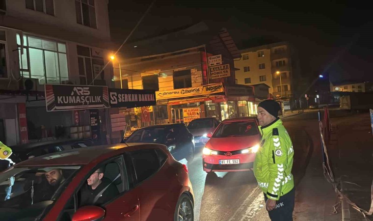 Düzce’de polis ekiplerinin yaptığı şok denetimde kontrole giren 31 aracın 25’ine çeşitli maddelerden 22 bin 191 lira ceza yazıldı.