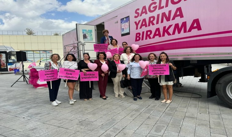 İzmir’de, “kontrolü ele al” isimli sosyal sorumluluk projesinde bir araya gelen kadınlar, meme kanserine karşı pembe renkli KETEM tırında sağlık taramasından geçti.