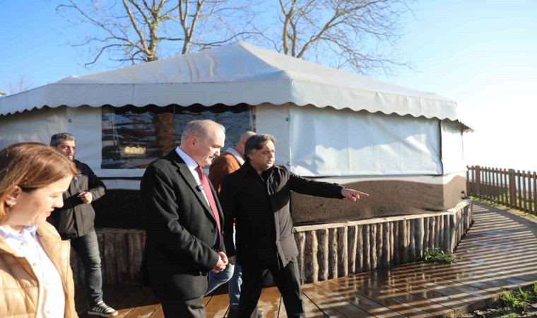 Düzce Belediye Başkanı Dr. Faruk Özlü, Düzce’nin en büyük turizm potansiyelini bünyesinde barındıran Konuralp Antik Kenti’ndeki son düzenlemeleri inceleyerek seyir terası zemininin traverten tipi taş döşeneceğini açıkladı.