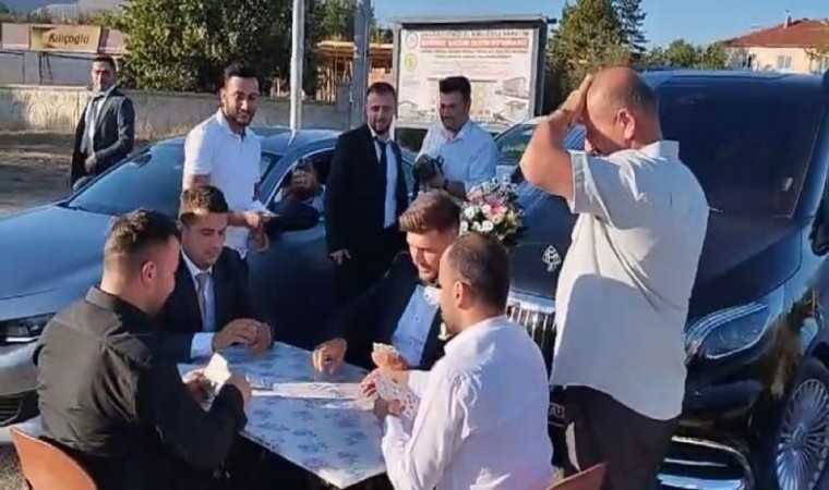 Çankırı’da dünyaevine giren bir damada, arkadaşları konvoyu durdurarak son kez pişti oynattı. O anlar ise renkli görüntülere sahne oldu.
