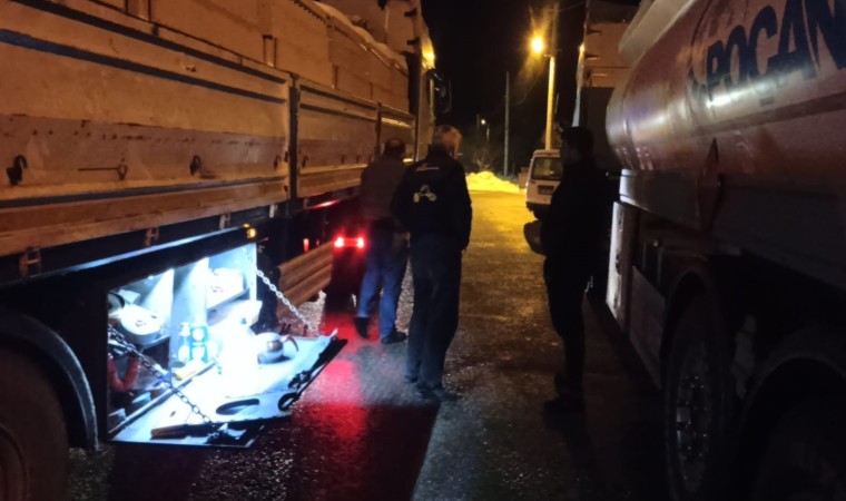 Yolda bekletilen sürücüler ise araçların yanında çay demleyerek çalışmaları izledi.