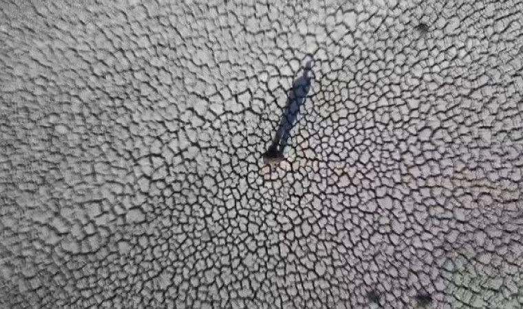 Konya’nın Karapınar ilçesinde bulunan Meyil Obruk Gölü’nün büyük bir bölümü yeraltı sularının çekilmesi ve kuraklık sebebi ile kurudu.