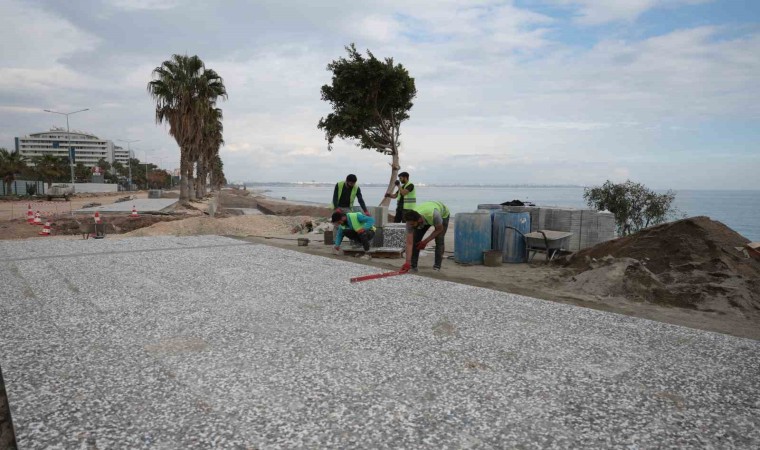 Antalya Büyükşehir Belediyesi’nin Boğaçayı Köprüsü ile Liman arasında kalan bir kilometrelik alanı yeni bir yaşam alanına çevirmek için başlattığı, ‘Konyaaltı Sahili Çevre Düzenleme Projesi’nde çalışmalar hummalı bir şekilde sürüyor.