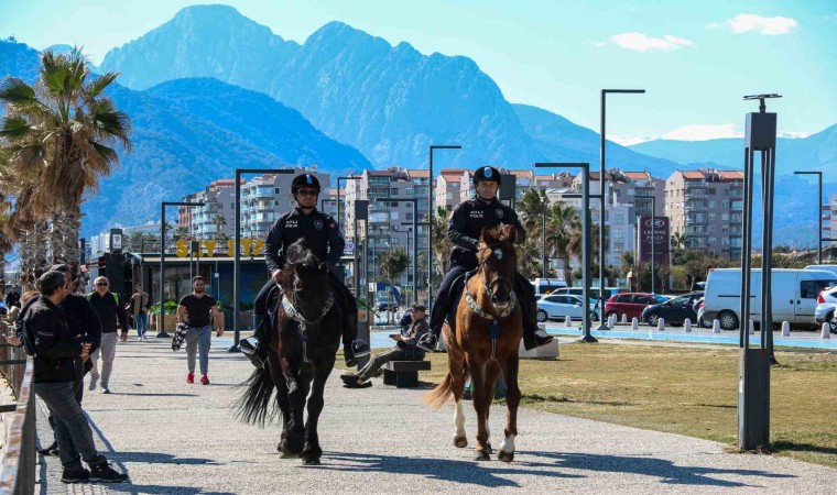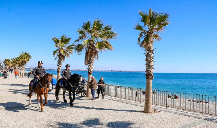 Günün belirli saatlerinde sahil boyunca devriye görevine çıkan atlı polisler, özellikle motorlu taşıtların giremediği yerlerde toplumsal olaylara müdahalede hazır bekliyor. Atlı Polis Birliği havaların ısınmasıyla birlikte sahilde yaşanan yoğunlukta hırsızlık başta olmak üzere asayiş olaylarında önleyici görevlerde bulunuyor. Diğer taraftan yabancı tatilciler ve vatandaşların ilgi odağı oluyor.