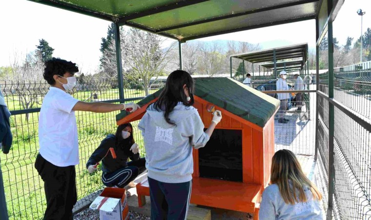 Özel bir okulun öğrencileri sosyal sorumluluk projesi bünyesinde Konyaaltı Belediyesi Sokak Hayvanları Sağlık ve Rehabilitasyon Merkezi’nde bulunan yavrulu anne kulübelerinin bakım, onarımı ve boyama işlemini gerçekleştirdi.