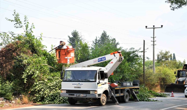 Konyaaltı’nda orman yangınlarının oluşumuna zemin hazırladığı gerekçesiyle elektrik tellerine değen ağaçların budama işlemi hızla sürdürülüyor. Konyaaltı Belediye Başkanı Cem Kotan’ın talimatıyla ekipler, mahallelerde tehlike arz eden ağaçları buduyor.