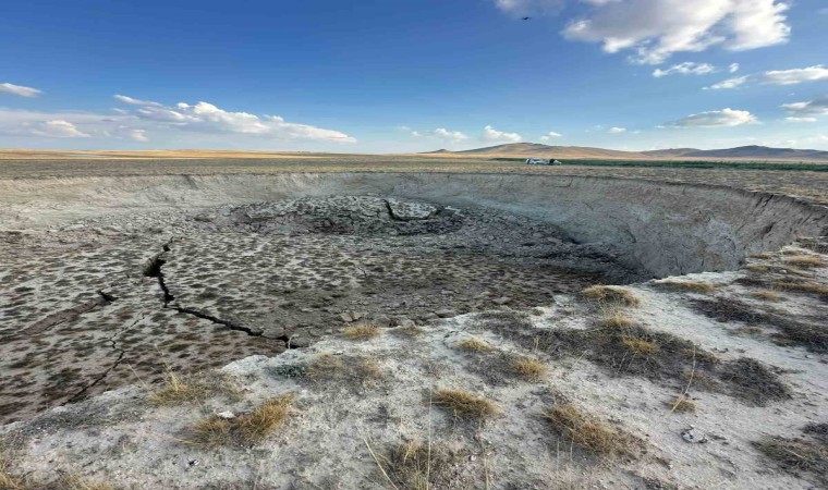 Konya’nın Karapınar ilçesinde son günlerde obruk oluşumları devam ederken, yaklaşık 100 metre çapında ve 10 metre derinliğinde yeni bir obruk oluştu.