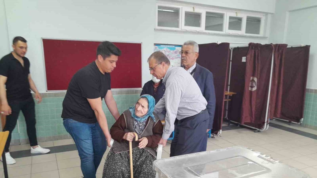 Konya’da 99 yaşındaki nine sandığa sandalyeyle getirildi