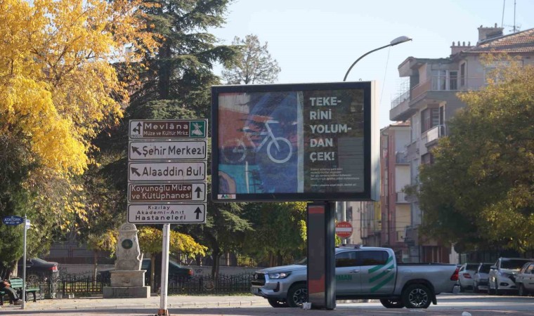 Konya’da bisiklet yollarındaki araç parklanmasının önüne geçme adına farkındalık çalışması yürütülüyor. Konya Büyükşehir Belediyesi ve şehirde bisiklet konusunda faaliyet gösteren sivil toplum kuruluşları, sürücülerinin araçlarını bisiklet yollarına park etmesinin engellemek için çalışma başlattı. Bu kapsamda 635 kilometre bisiklet yoluyla Türkiye’nin en uzun bisiklet yoluna sahip şehri Konya’da konuya dikkat çekilmesi için billboardlarda, reklam panolarında, elektronik yönlendirme ve bilgilendirme ekranlarında bisiklet yollarına park edilmemesi konusunda mesajlar içeren paylaşımlar yapılıyor. Bunun yanı sıra bisikletseverler, bisiklet yollarına park eden araçların kapı kollarına “Siz Durunca Bisiklet İlerleyemiyor” ve “Siz Rahatınıza Bakarken Bisikletler Yolda İlerleyemiyor” yazılı kartlar bıraktı.