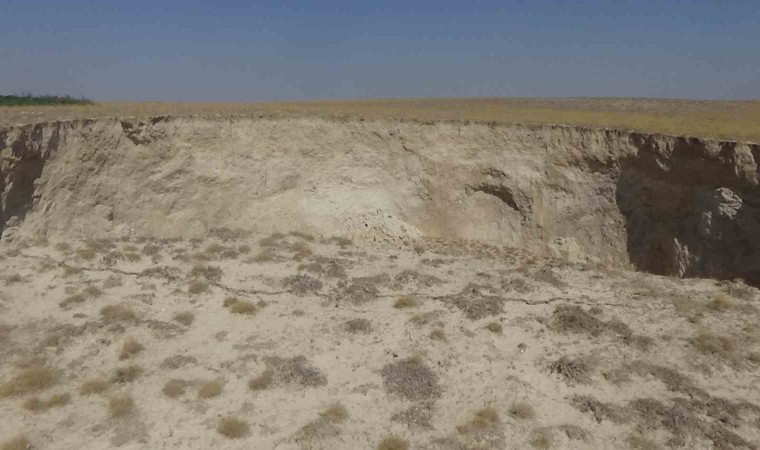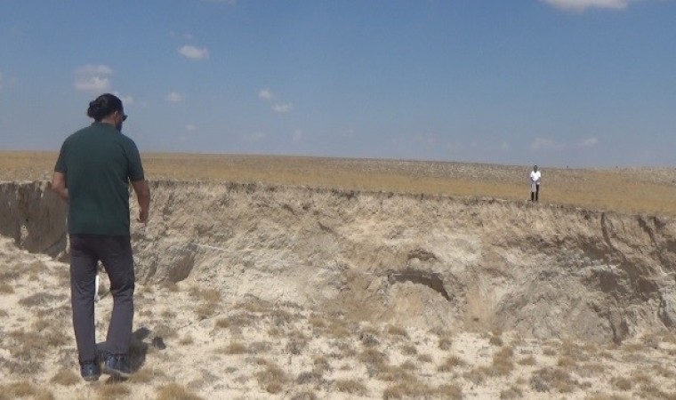 Konya’nın Karapınar ilçesinde çevresi 100 metre olan 10 metre derinliğinde oluşan obrukta incelemeler sürüyor.