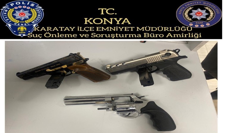 Karatay İlçe Emniyet Müdürlüğü Suç Önleme ve Soruşturma Büro Amirliği ekipleri ise Karatay ilçesinde 2 farklı mahalledeki düğünlerde havaya rastgele ateş edilmesi ihbarı üzerine çalışma başlattı. Adreslerde yapılan çalışmada, 8 adet kurusıkı tabanca ele geçirilirken, 3 kişi hakkında yasal işlem başlatıldı.