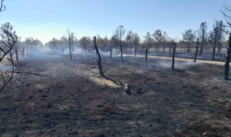 Konya’nın Karapınar ilçesinde, Çölleşme ve Erozyon Araştırma Merkezi Erozyon Önleme Sahası’nda orman yangını çıktı. Uzun süren çalışma sonucunda yangın söndürülürken, yaklaşık 100 dekar orman alanı zarar gördü, yüzlerce ağaç yandı.