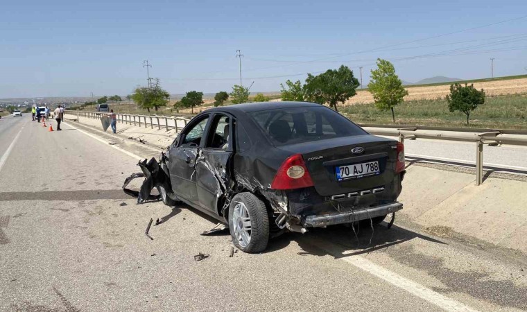Kaza, saat 09.50 sıralarında meydana geldi. Edinilen bilgiye göre, Kulu Bölge Devlet Hastanesinden ana yola çıkmakta olan N.K. idaresindeki 42 ACN 243 plakalı Toyota marka otomobil ile Makas Kavşağı istikametine seyir halinde olan H.Y. yönetimindeki 70 AJ 788 plakalı Ford marka otomobil çarpıştı. 70 plakalı otomobil refüj bariyer demirlerine çarparak yaklaşık 80 metre ileride durabildi. Kaza ihbarı üzerine olay yerine sağlık ve polis ekipleri sevk edildi. Kazada, 42 plakalı otomobil sürücüsü N.K. ve araçta bulunan eşi E.K. ile diğer otomobilde yolcu olarak bulunan E.İ. (19) ve K.K. (27) yaralandı. Yaralılar hastaneye kaldırılarak tedavi altına alındı. Kazaya karışan otomobiller çekici vasıtasıyla yoldan kaldırılırken, kaza ile ilgili tahkikat başlatıldı.