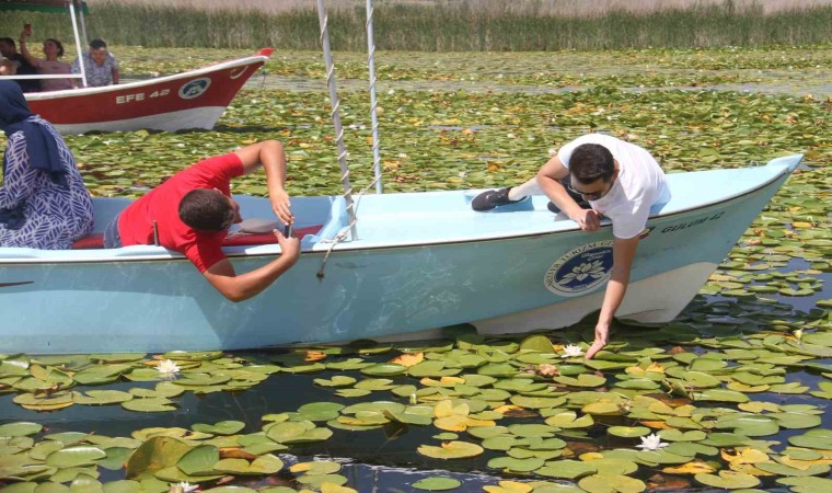 Konya’nın Beyşehir ilçesindeki Türkiye’nin 2. büyük milli parkı olan Beyşehir Gölü Milli Parkı’nda yoğun ziyaretçi çeken nilüfer bahçesi görenleri kendisine hayran bırakıyor.