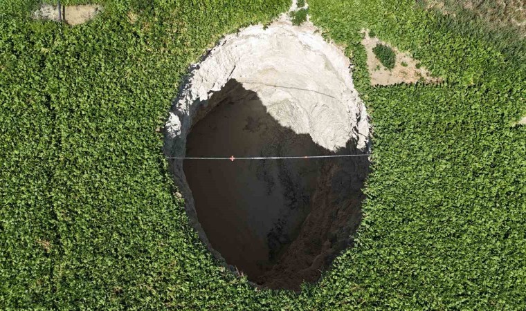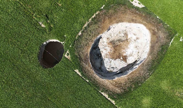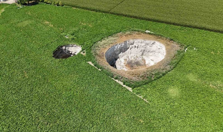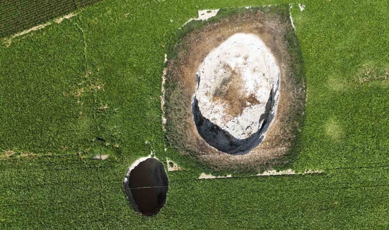 Konya’nın Karapınar ilçesinde pancar ekili tarlada 40 metre derinliğinde yeni bir obruk meydana geldi. Geçen sene de aynı tarlada obruk oluştuğu öğrenildi.