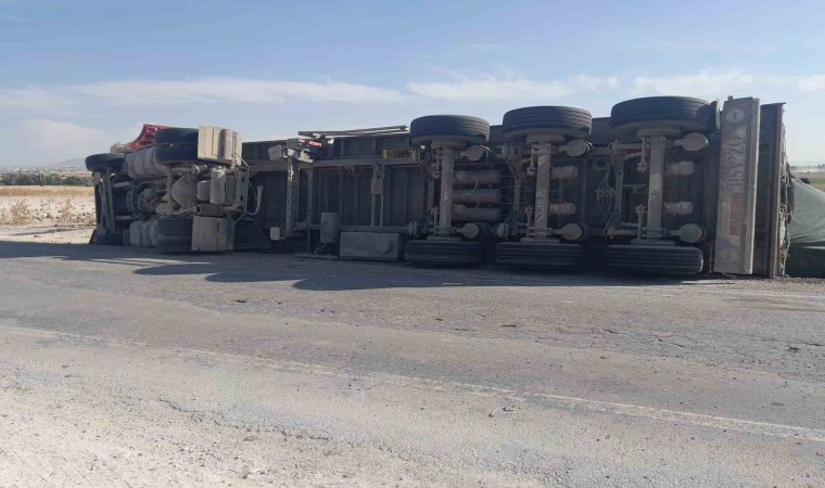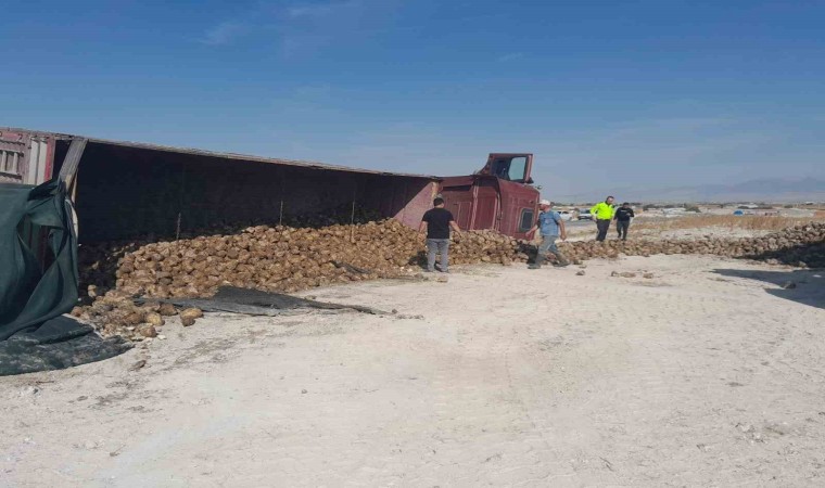 Konya’nın Karapınar ilçesinde kontrolden çıkan pancar yüklü tırın devrilmesi sonucu meydana gelen trafik kazasında 2 kişi yaralandı.