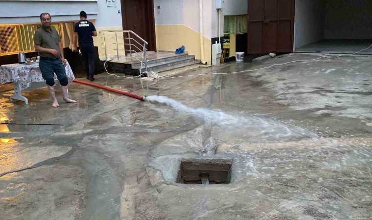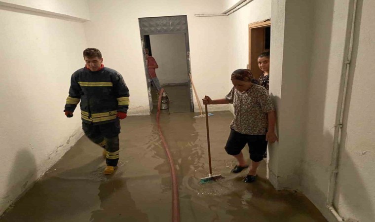 Konya’nın Kulu ilçesinde yağan şiddetli yağmur sonrasında sel meydana gelirken, bazı evlerin bahçeleri ile bodrum katları su ile doldu.