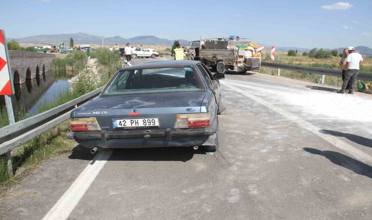 Konya’nın Beyşehir ilçesinde otomobil ile süt tankı taşıyan kamyonetin çarpışması sonucu meydana gelen trafik kazasında 4 kişi yaralandı.