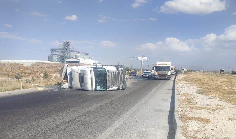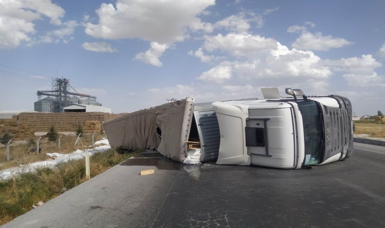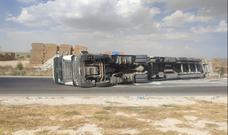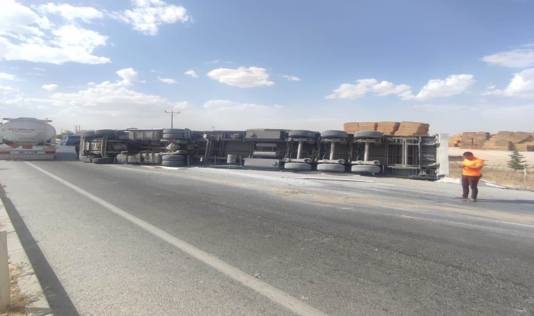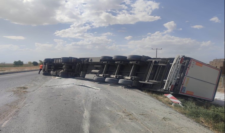 Konya’nın Karapınar ilçesinde seyir halindeki tırın devrilmesi sonucu meydana gelen kazada tırın sürücüsü yaralandı.