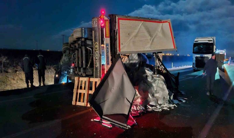 Konya’nın Karapınar ilçesinde kontrolden çıkan tırın devrilmesi sonucu sürücü yaralandı.