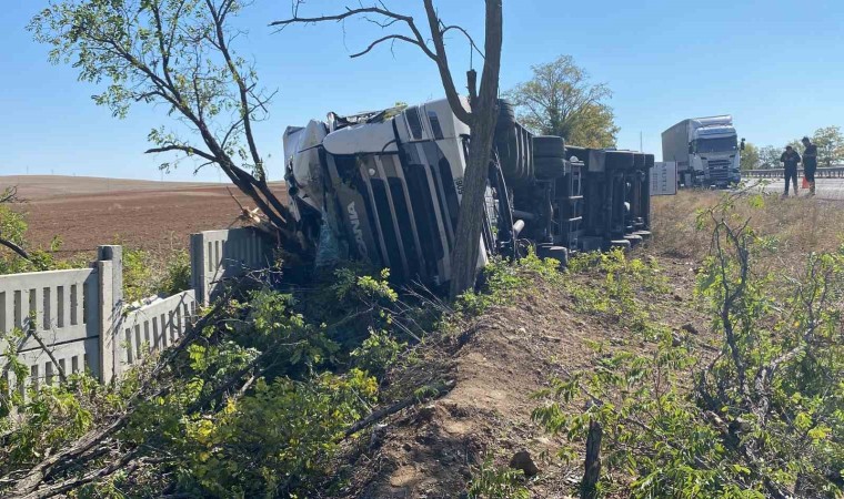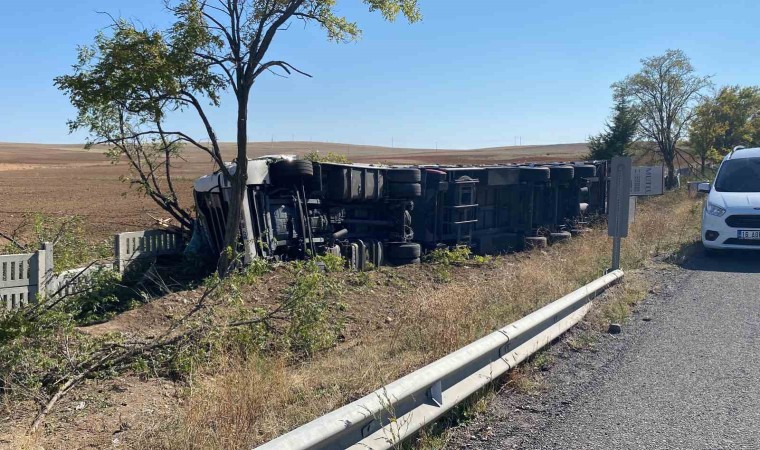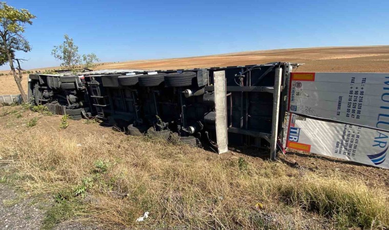 Konya’nın Kulu ilçesinde şarampole devrilen tırın sürücüsü yaralandı.