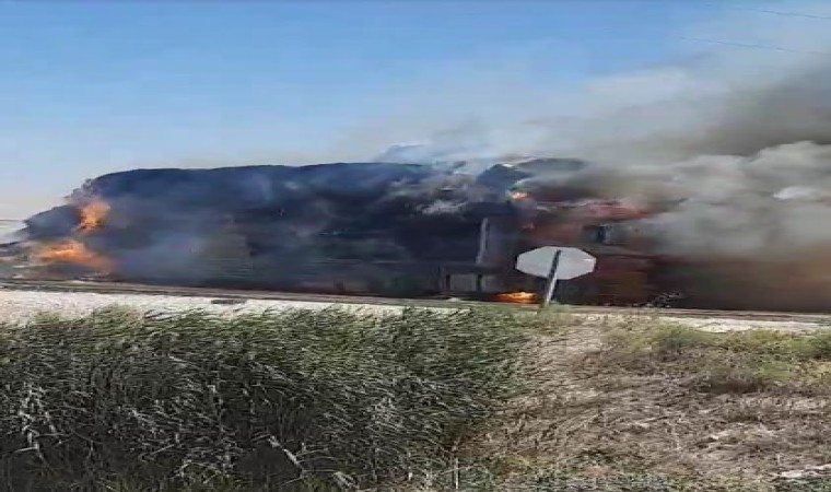 Konya’da tırda yüklü tonlarca saman balyası çıkan yangında küle döndü.